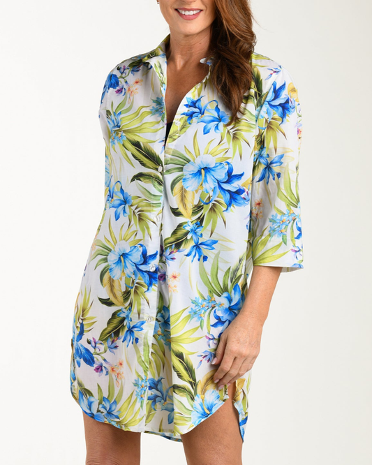 Maxine of Hollywood Island Serenity Button Down Tunic Cover Up - MM6MK49