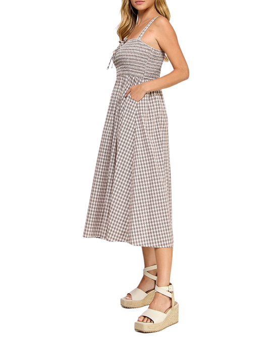 Blush BJ Smocked Gingham Midi Dress - D5586