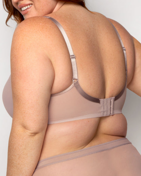 Curvy Couture Sheer Mesh Plunge Underwire Bra (More colors available) - 1310 -Bark