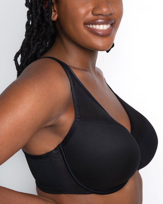 Curvy Couture Sheer Mesh Plunge Underwire Bra (More colors available) - 1310 - Black