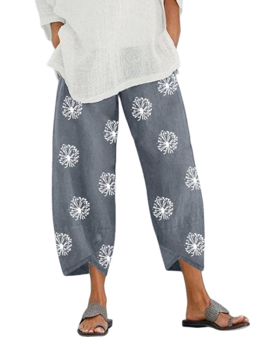 Sheer Trend Plus Size Loose Flower Print Split Joint Cover Up Pants with Pockets - 16766