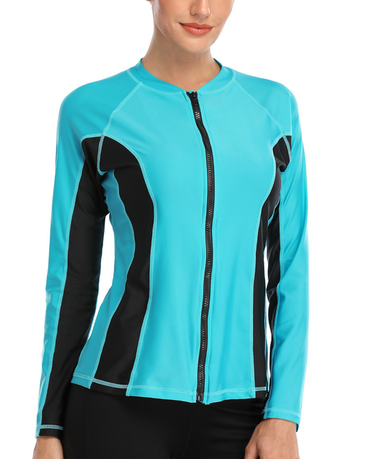 Charmo Front Zipper Long Sleeve Rash Guard - D5064