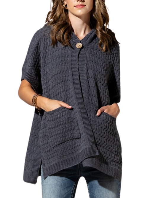 Urabanista Textured Knit Cape with Hood - El1evt111180