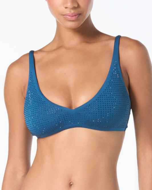Michael Kors Rhinestone Studded Solids V Neck Bikini Top - MM17968