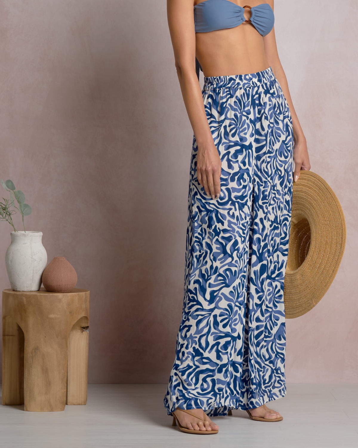 - Flowing wide leg pant with a relaxed silhouette