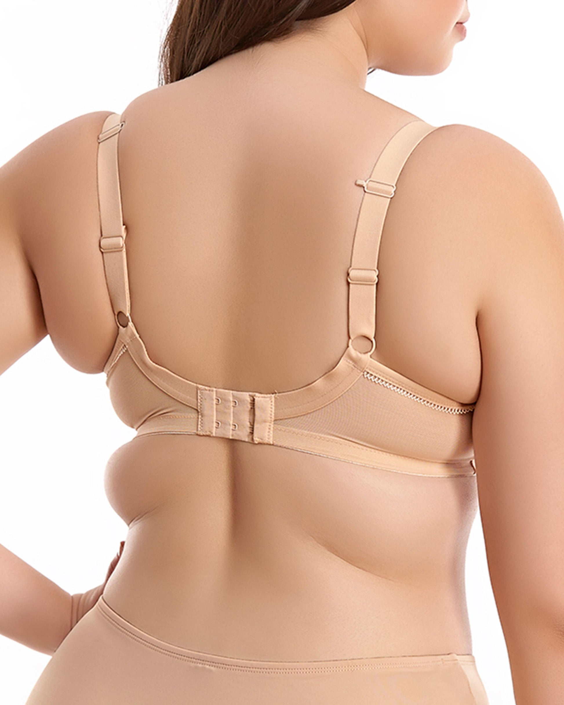 Elomi's must-have Bijou Molded Bra provides an everyday plunge style without push up. Molded cups in an essential Sand colorway creates a beautifully rounded shape in sizes E - H. Elastic trims along the neckline offers a fabulous fit, finished with a moveable J-hook to allow a racerback strap style.