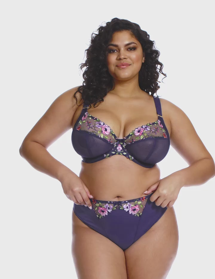 Inspired by our bestselling Matilda Bra, Elomi’s mesmerising Himari Plunge Bra is now available in our deep Midnight hue. Designed with precision-printed embroidery to create a striking 3D effect of tropical and intricate florals in bold pinks and greens. Featuring a low centre front that gives a plunging neckline without push up and an elastic neck edge to ensure a perfect fit, you are sure to take your everyday style to the next level.
