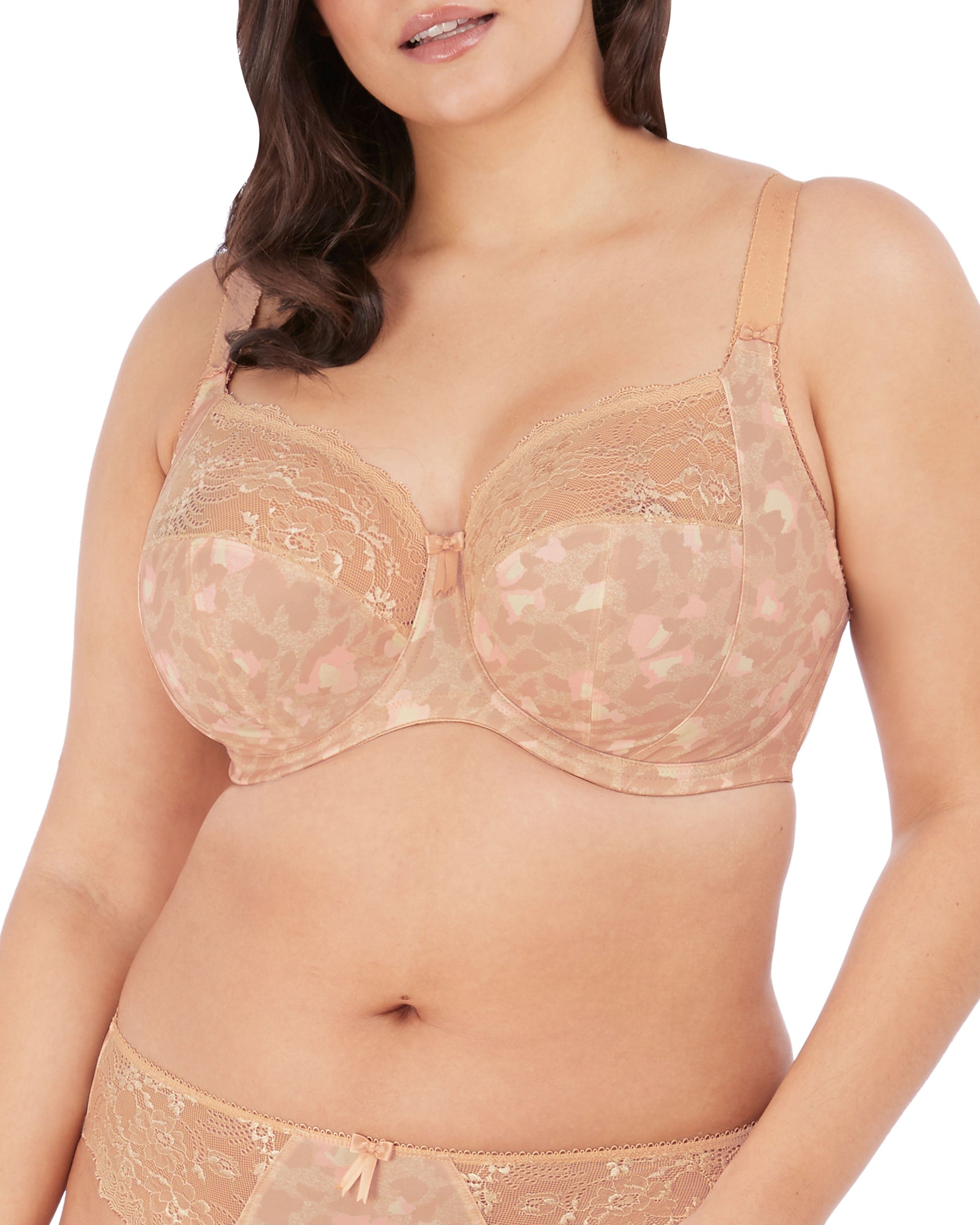 Let your wild side out with the must-have Morgan collection, the everyday Banded Bra in Toasted Almond features a subtle animal print with matching stretch lace. The three section cups plus side frame offers sublime support and shape in sizes DD – K.
