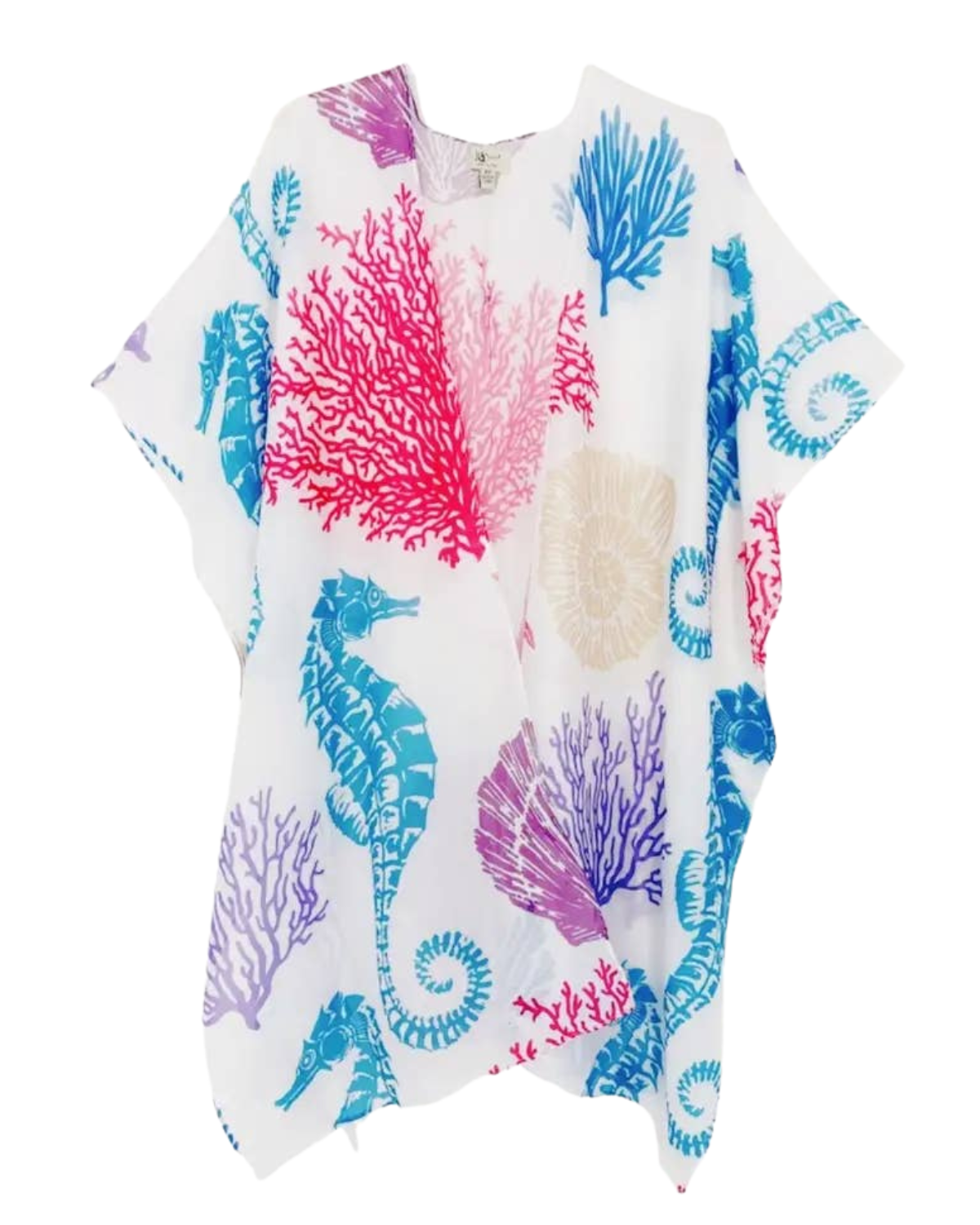 JC Sunny Seahorse Shell and Coral Kimono Cover Up - JC062730