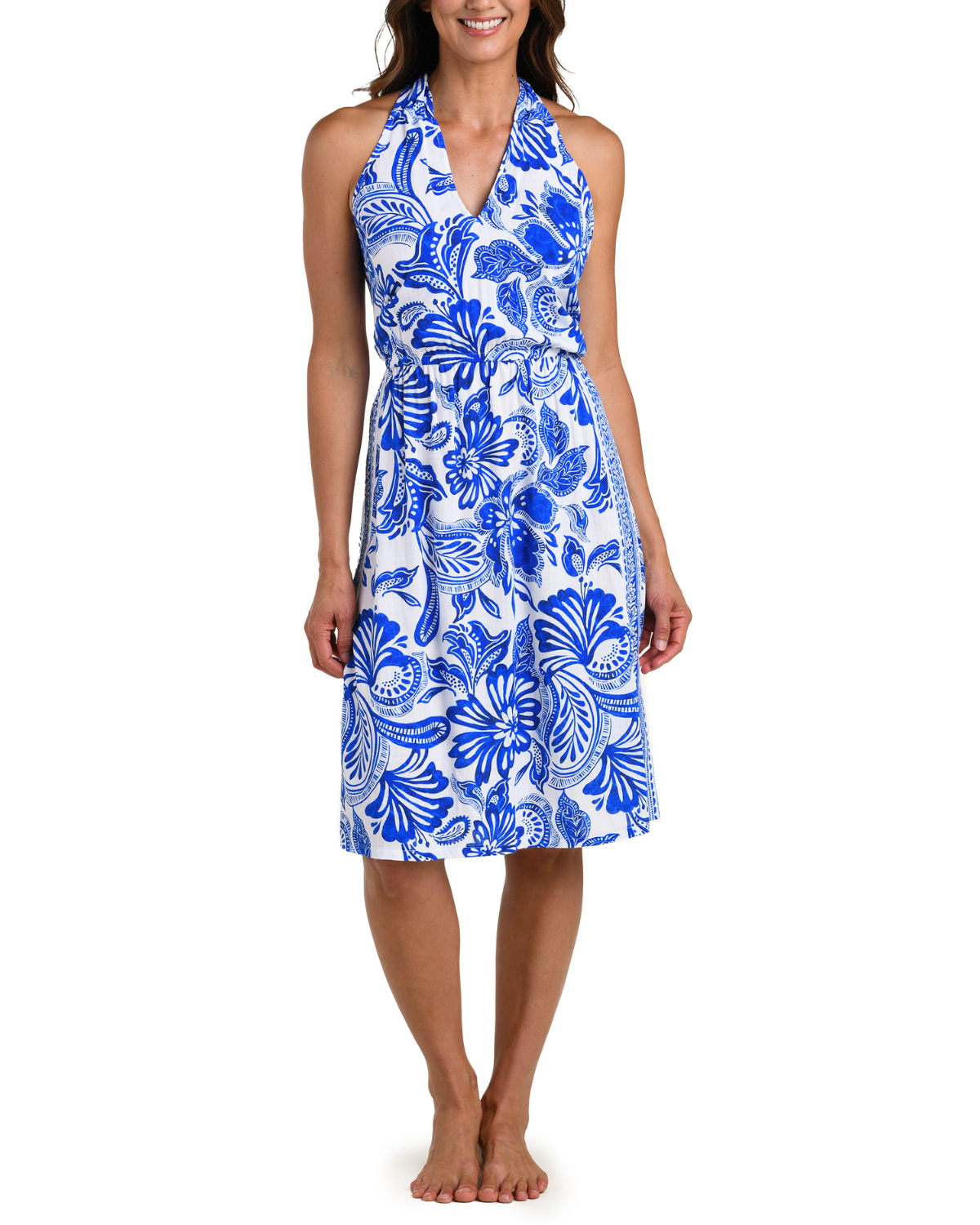 La Blanca Botanical Brocade Knotted Halter Dress - LB6CC67