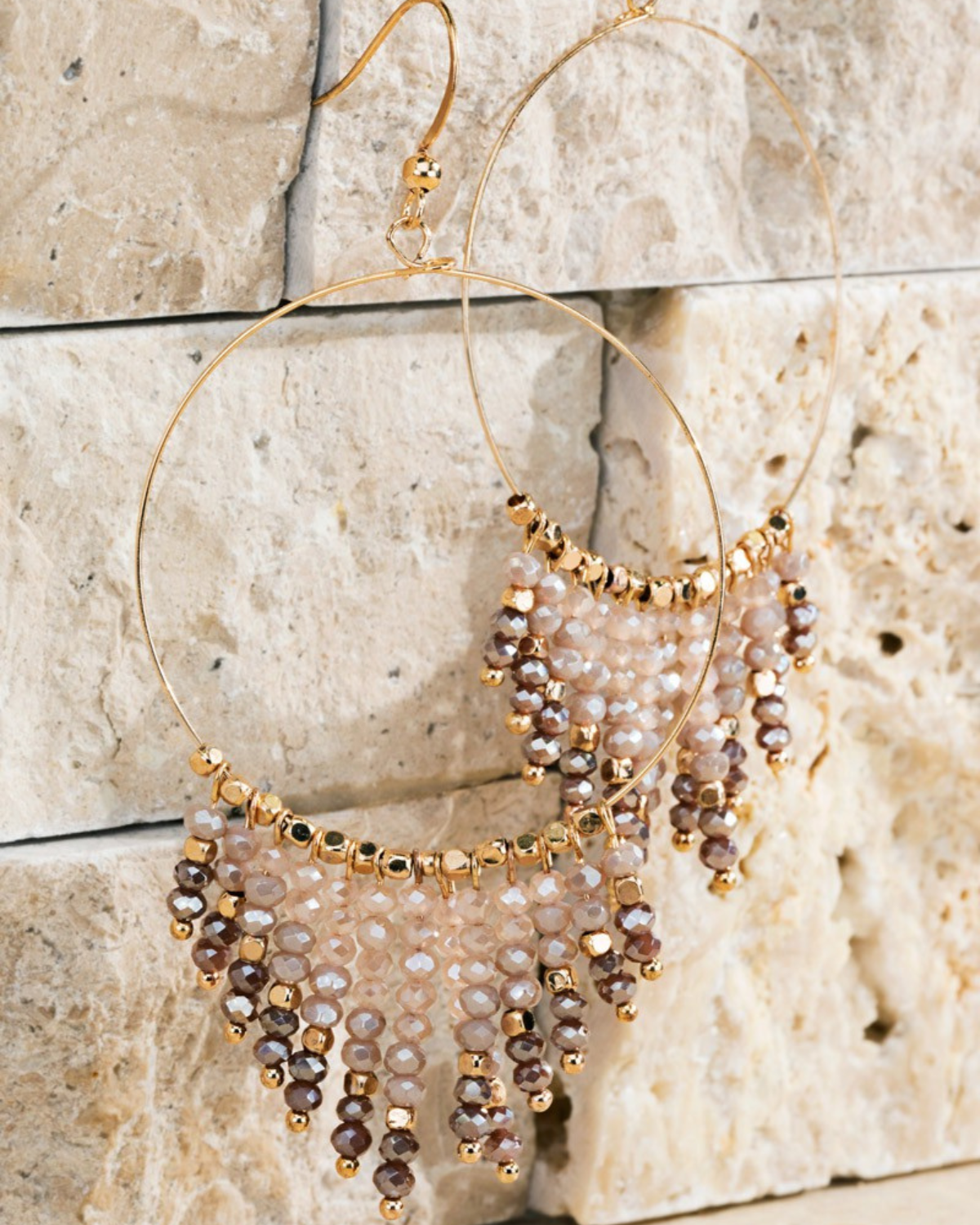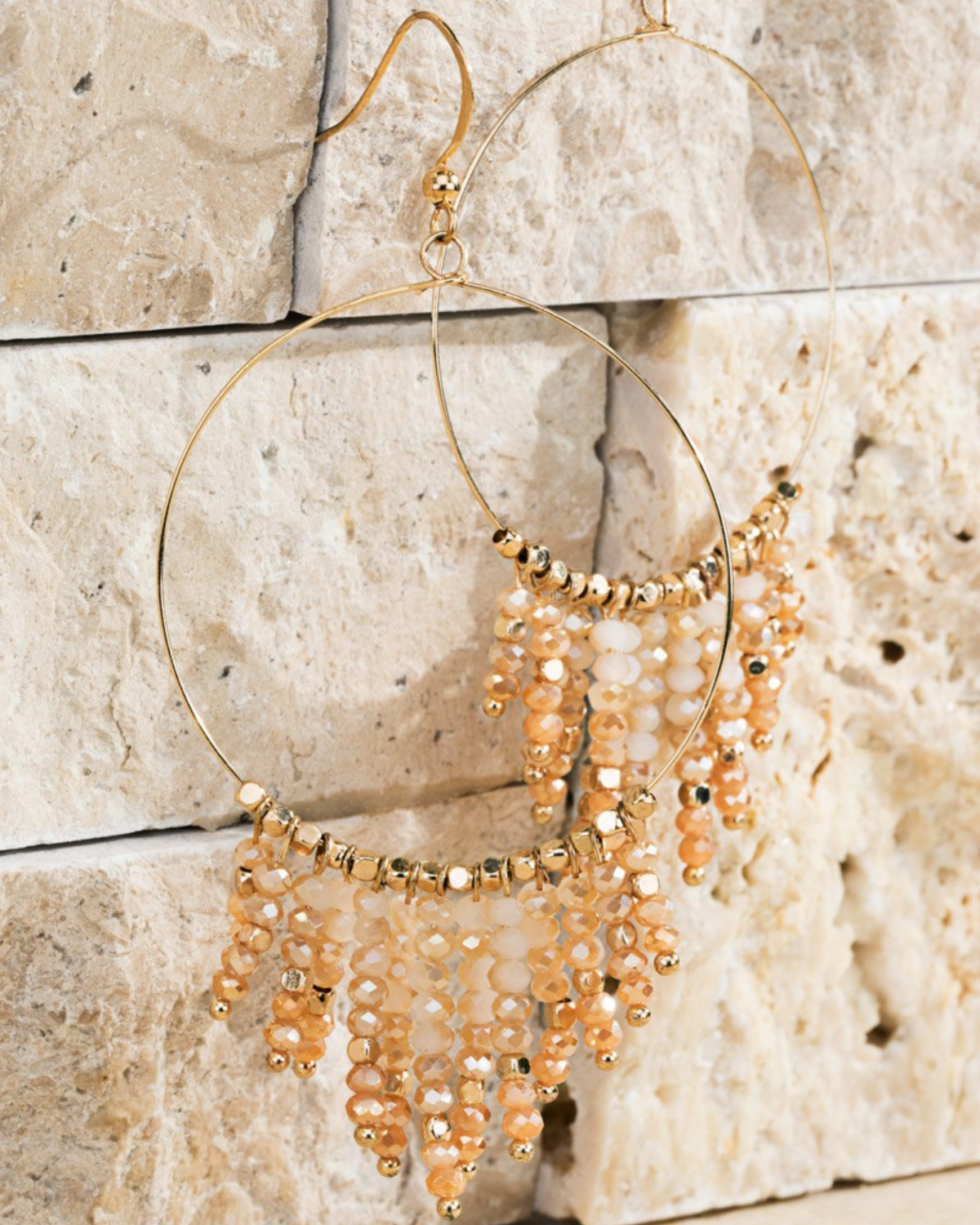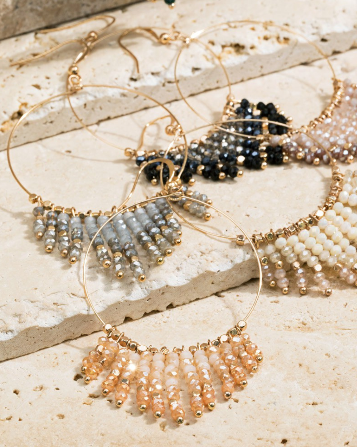 - Shimmering glass beaded tassel chandelier with metal ring fish hook earrings